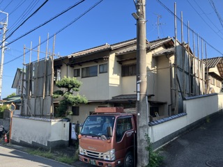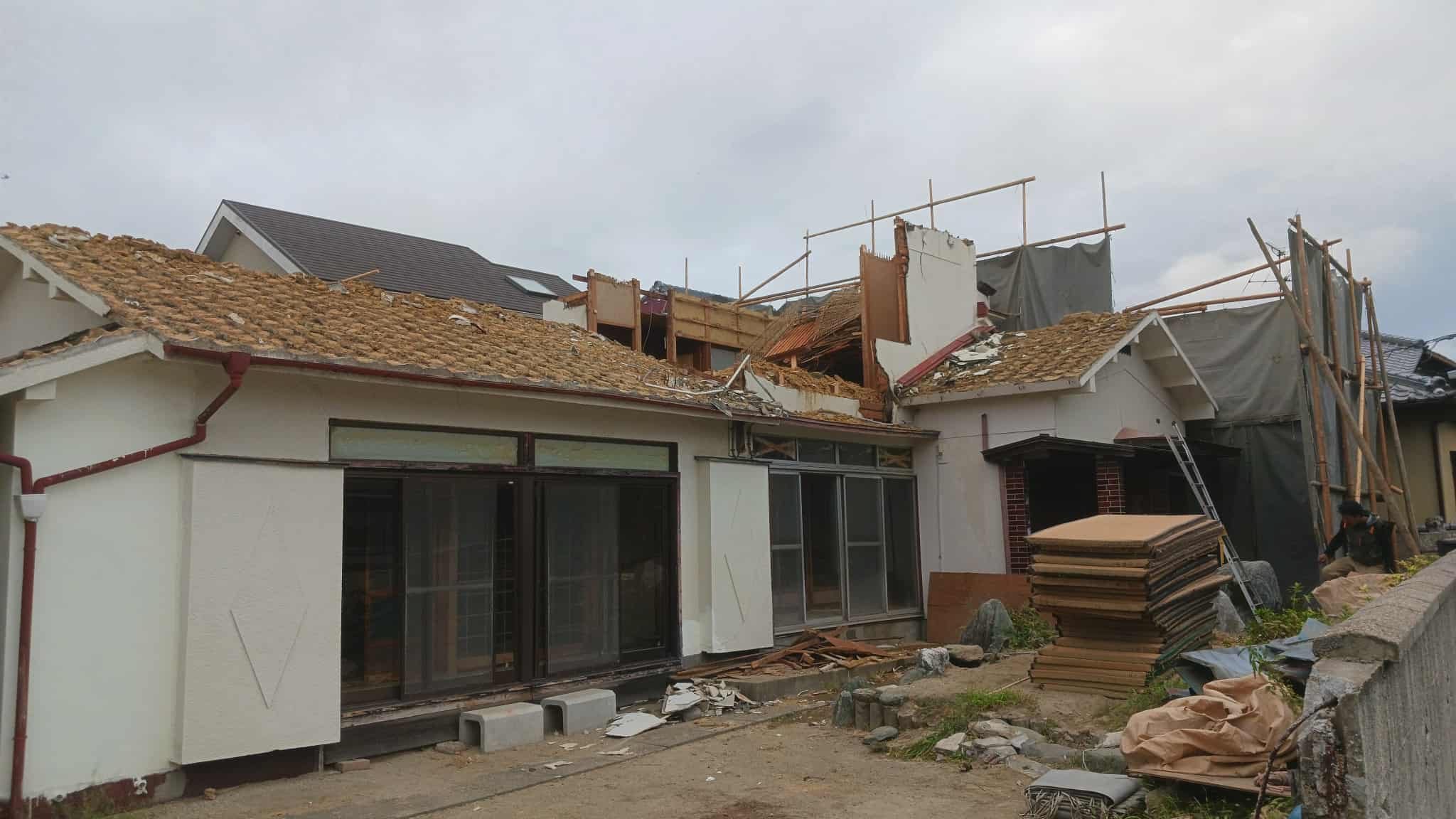 こんにちは、阿川建設、新本です。築何年かは、分かりませんが、かなり、風化が、進んで出る、建屋なので、慎重に作業を進めています。怪我、事故の無いよう努めたいです。
