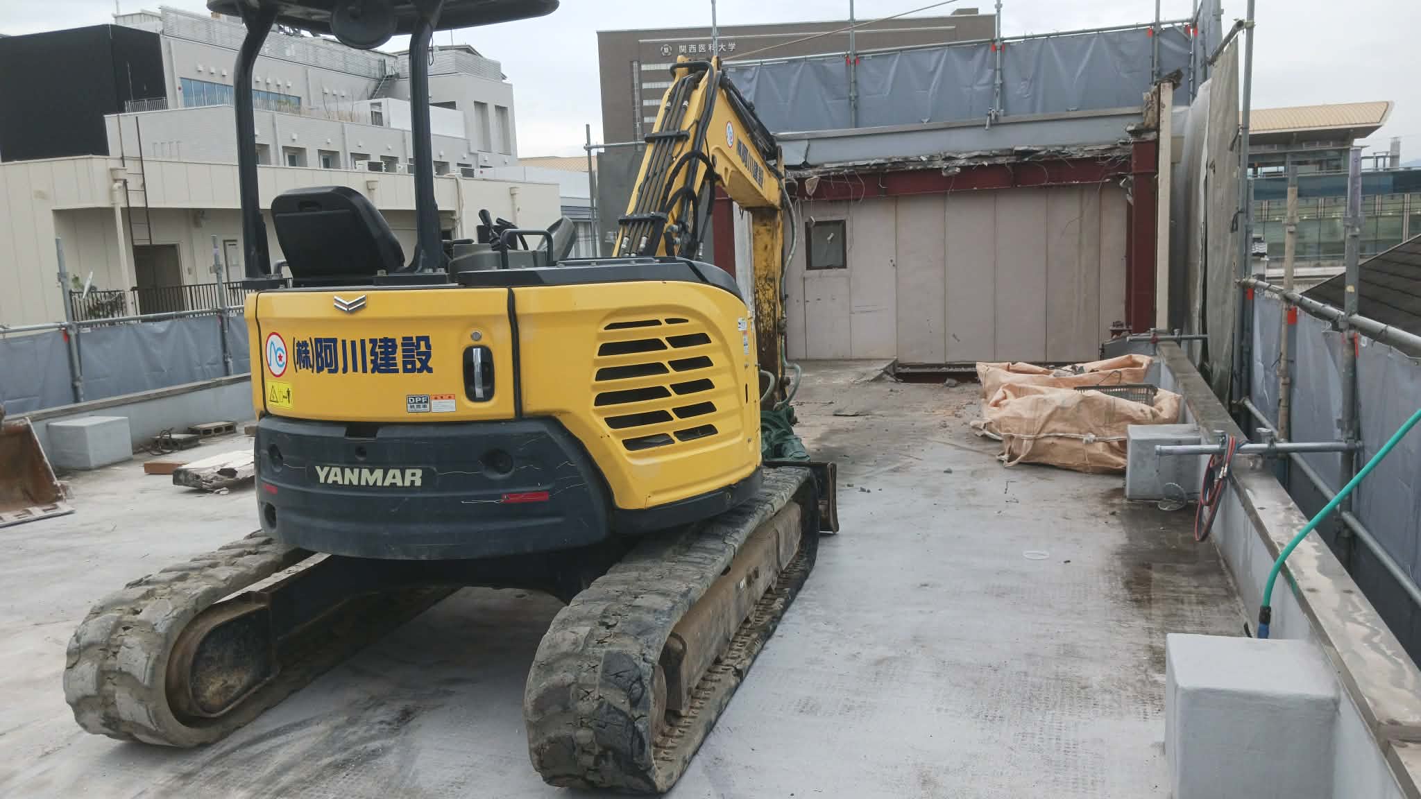 本日は、屋上階にて重機の揚重作業および発生材の荷下ろし・搬出作業を行いました。
