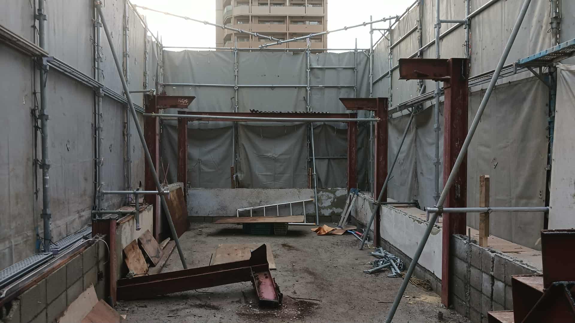 今日の作業は基礎を侵食し、出てきた鉄筋を邪魔にならないようにガスで切断します。