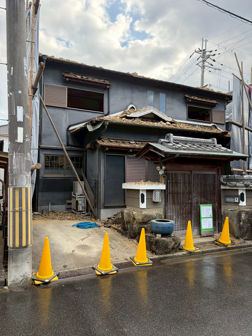 現場は住宅地のなかにあり、いつもどおり騒音や粉塵の飛散に対する配慮や、徹底した安全確認が必要になります。今回に限らず