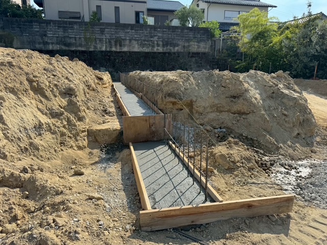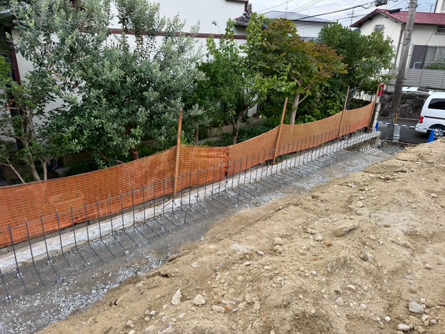 すでに掘削はしているので、砕石(さいせき)→配筋と進めていくところです。