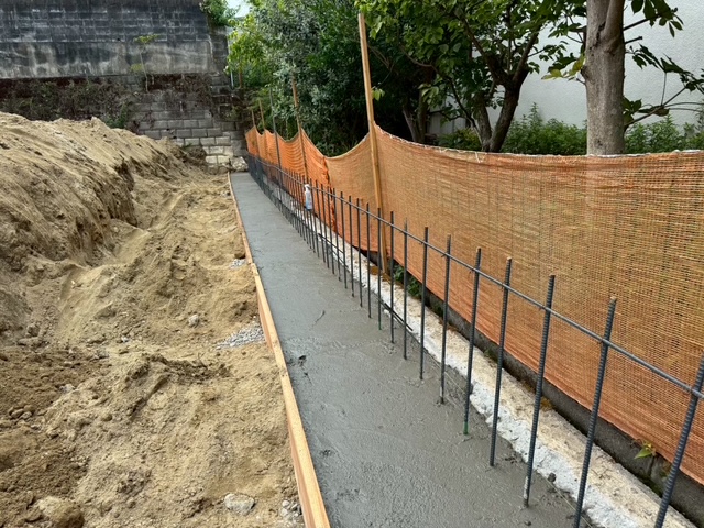 配筋と基礎部分のコンクリートを流し込んでいきます。