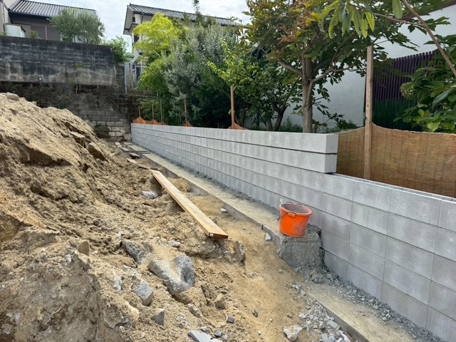 擁壁(CPブロック)を積んで、間仕切り部分のブロック施工も完了です。