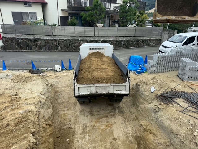 今回の工事では、期間中に2度残土の搬出作業を行いました。
